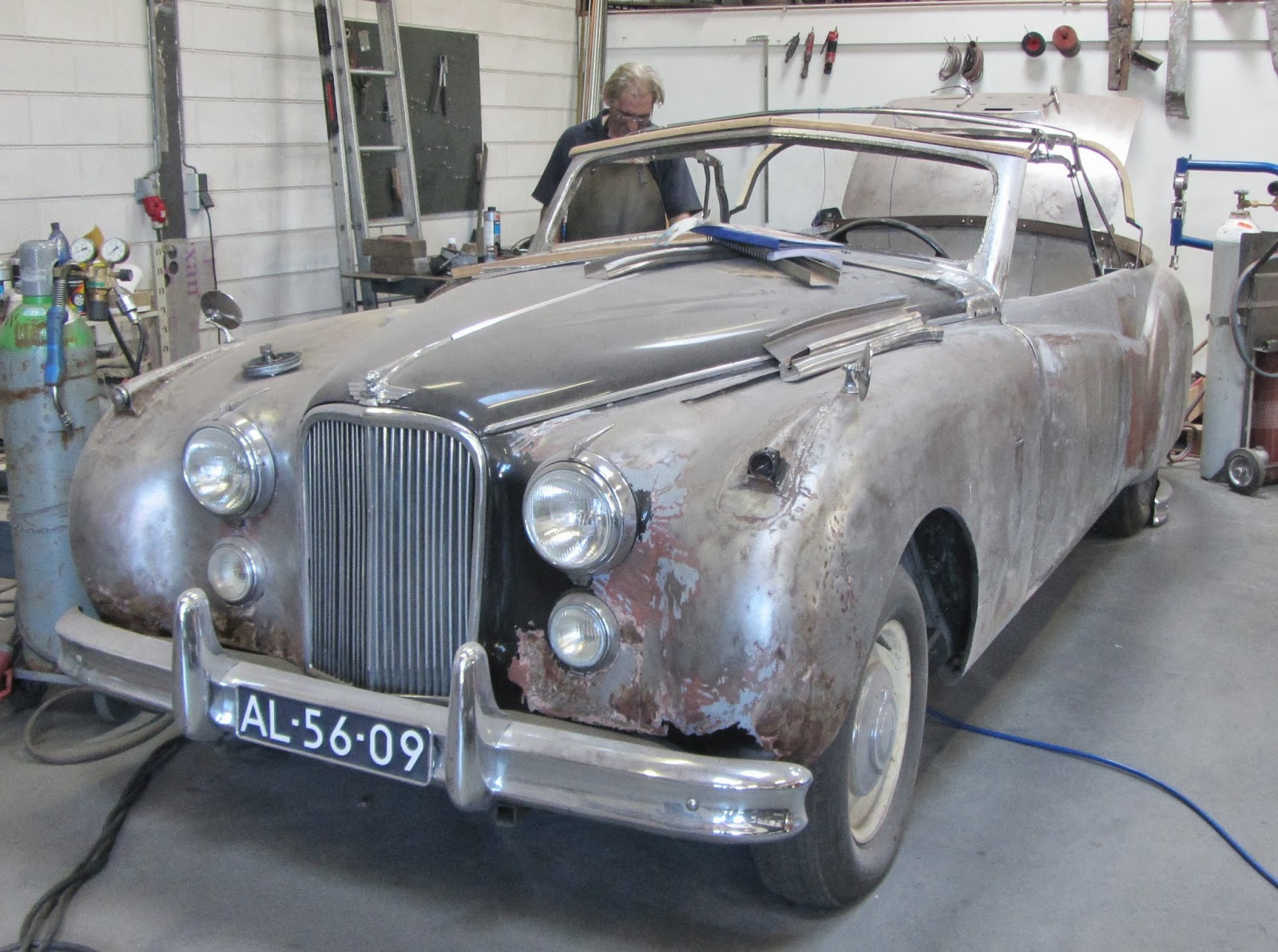 I was like a kid in a candy shop. In the trim shop was a MK 8 Jaguar saloon being converted, very tastefully I add, into a cabriolet and next door was a XK140 in dull silver with another Lancia and two MK2 Jaguar saloons, unbelievable; some were being worked on, some finished. After catching my breath and taking many photos I talked to the owner, thanked him and bade him farewell. (Serendipity or what!)