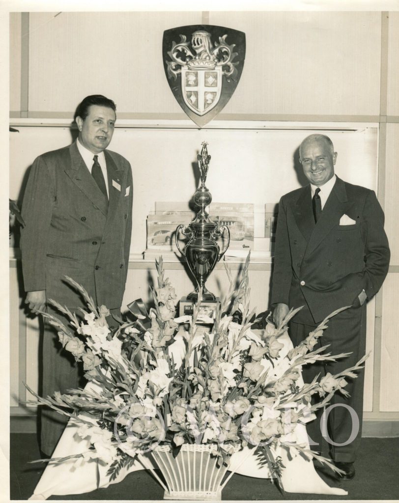 Mr. Melton, who for reasons not explained was referred to as “Mick”, joined Rootes in 1946 after being demobbed from the RAF. In 1949 he moved his family to New York to work directly for Brian Rootes (second son of the first Lord William Rootes), with a sales area described as “Whole of America”! Throughout his career, he spent considerable time overseas visiting many places, including Portugal, Arabia and Beirut. In 1962 he returned to England and joined the Head Office team at Devonshire House, until his retirement in 1966. Between 1953 and 1954 Cecil worked for Donald Healey probably as his U.S. sales representative. In that capacity, he was befreinded by Jackie Cooper the film star and Austin Healey 100 racing car driver (see photos below).